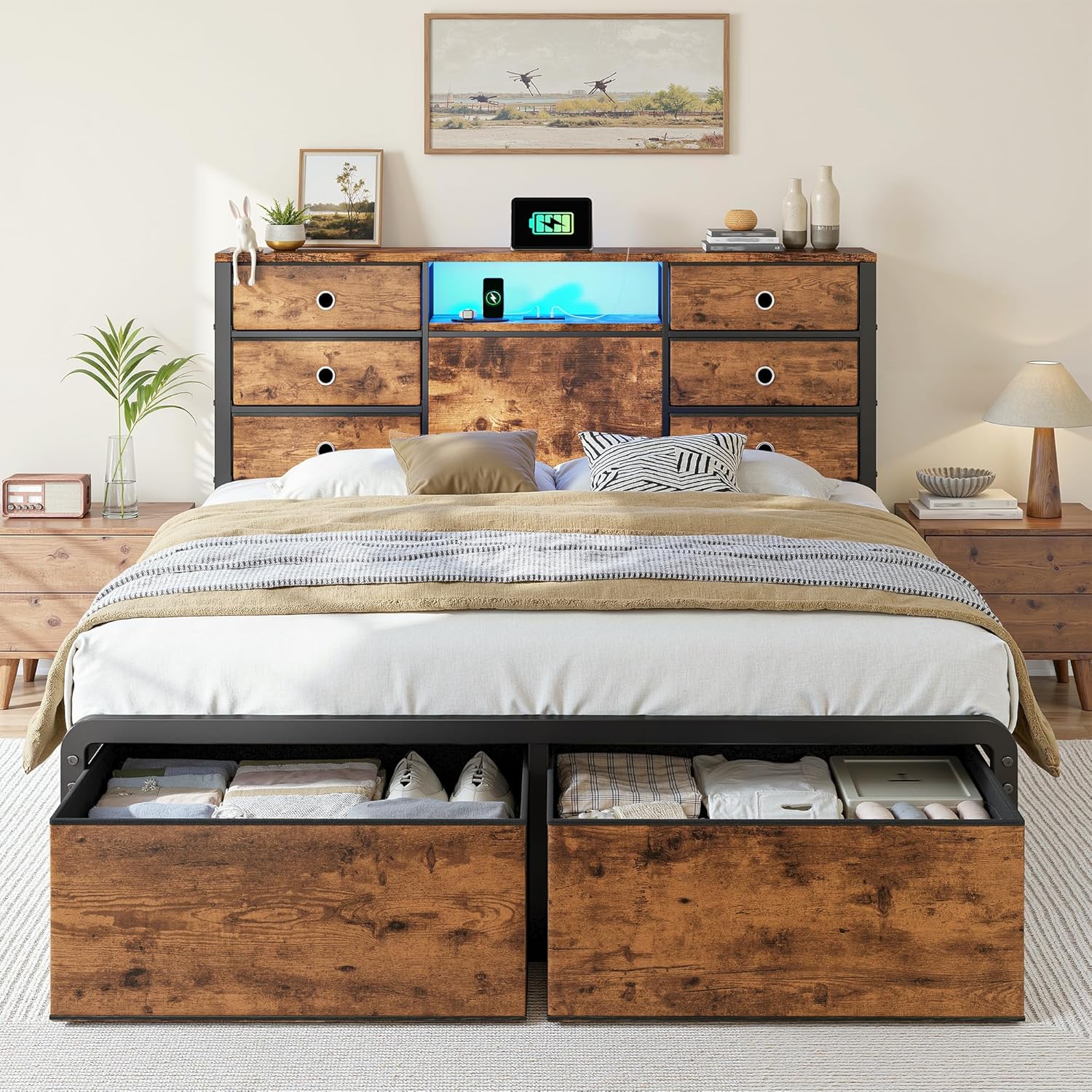 | Included Components | 6+2Drawer, Headboard, Light kit inlcuded, Storage Box |